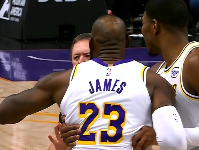 下半场调整回来不久,狄龙又和詹姆斯闹上了,后者这次没忍住,抓着裁判的左手向裁判疯狂投诉,怒视狄龙非常不爽,想要揍人的节奏,安保都出动了。结果詹姆斯被吹罚技术犯规,更加不舒服,继续和裁判理论。回到比赛,詹姆斯强攻狄龙失败,前者造成狄龙进攻犯规,两人是结下梁子,很深的那种。